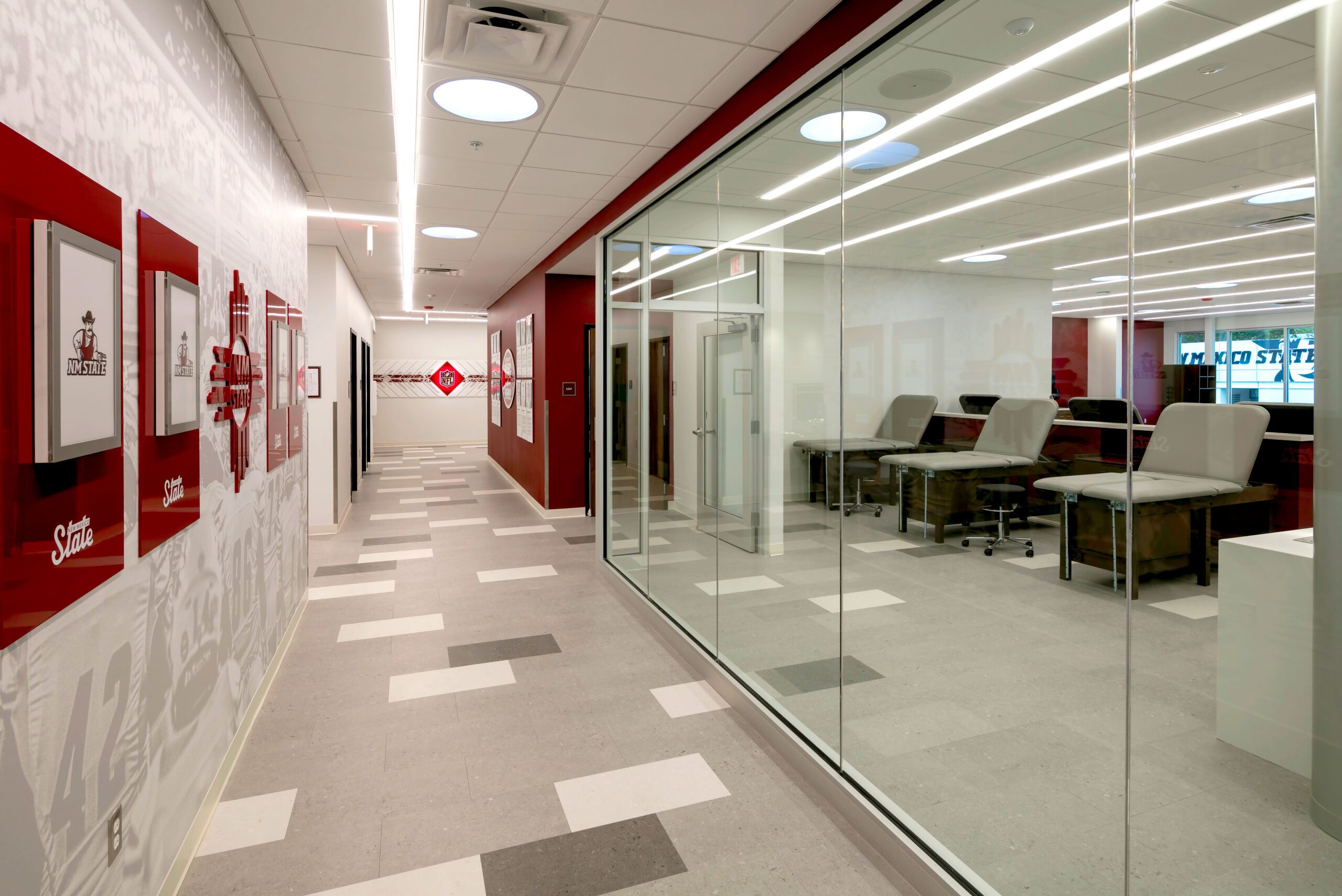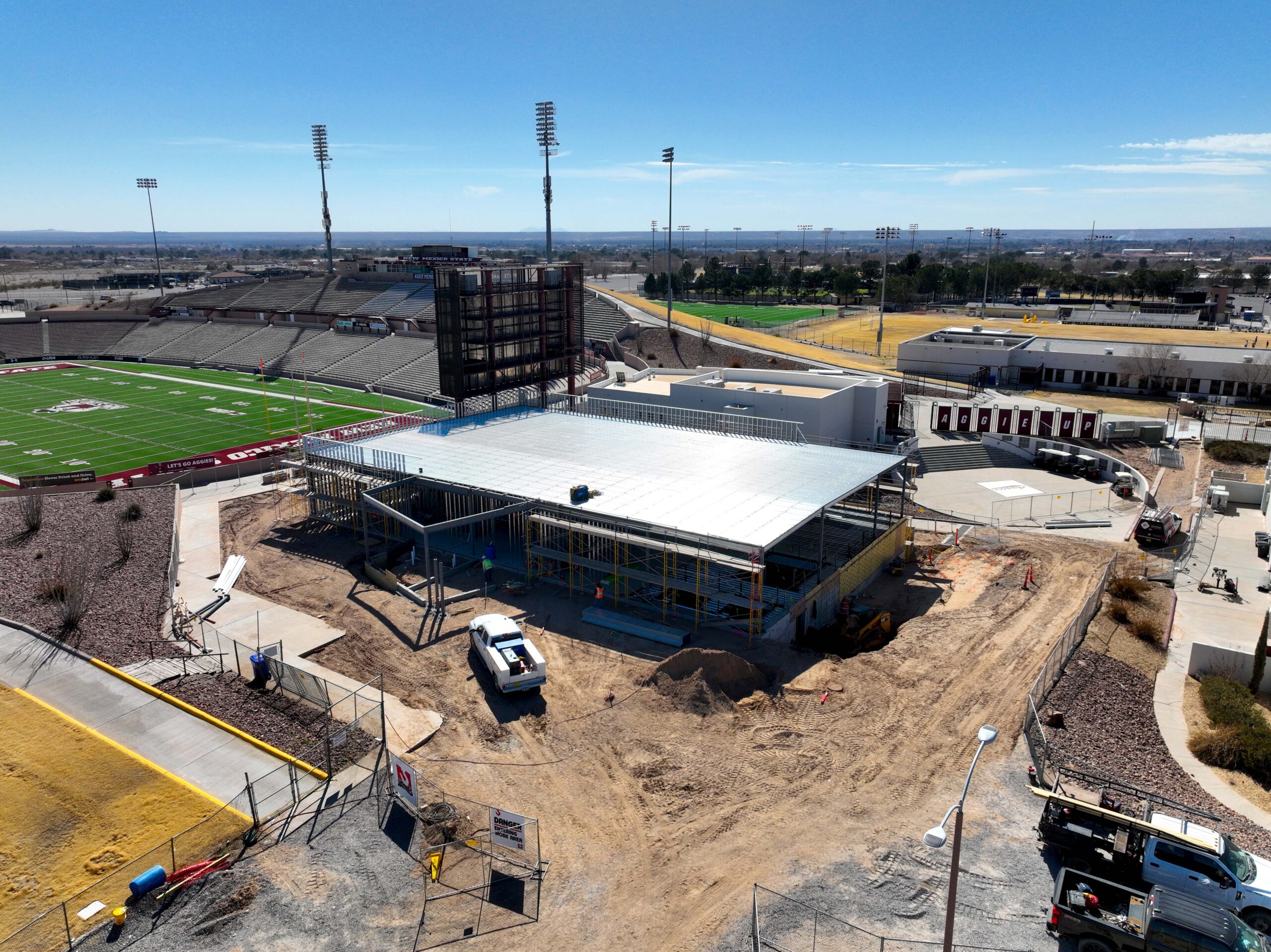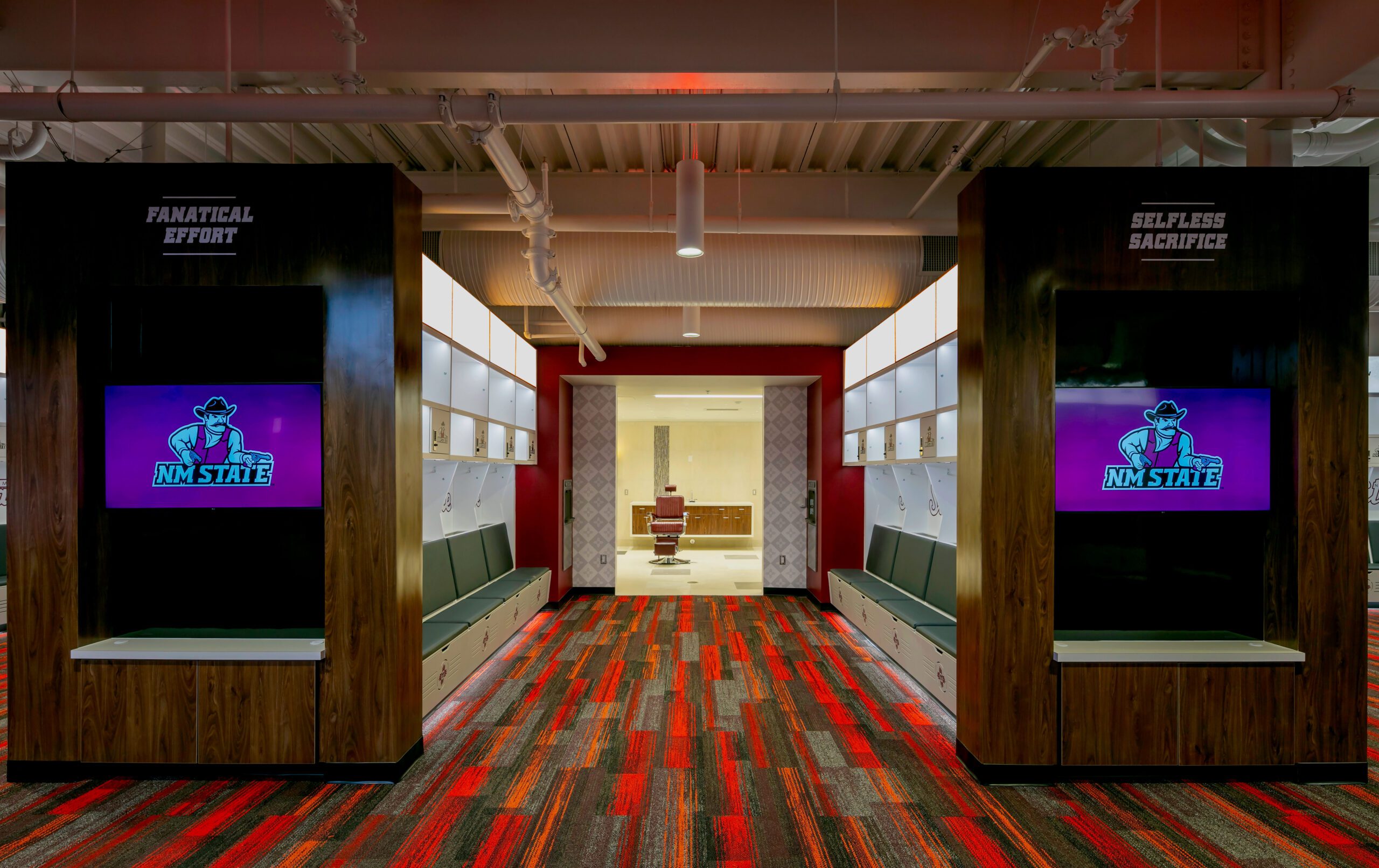 The New Mexico State University Football Operations Center is an 18,000-square-foot, high-performance addition to the Aggie Memorial Stadium complex that integrates athletics, academics, and sustainability within a constrained infill site. Designed with a split-level configuration to provide both field and concourse access, the facility required innovative structural solutions, including engineered foundations and retaining walls to align the locker room with field elevation while resisting lateral earth pressures. The state-of-the-art locker room features 120 individually vented lockers, with mechanical and electrical systems precisely coordinated through 3D modeling to optimize efficiency within the compact footprint. The project incorporates high-efficiency systems, a 33 kW rooftop solar array, low-VOC materials, sustainable site development, and integrated stormwater management. The result is a technically sophisticated, environmentally responsible facility that advances student-athlete well-being and sets a new benchmark for collegiate athletic design in the Southwest.
